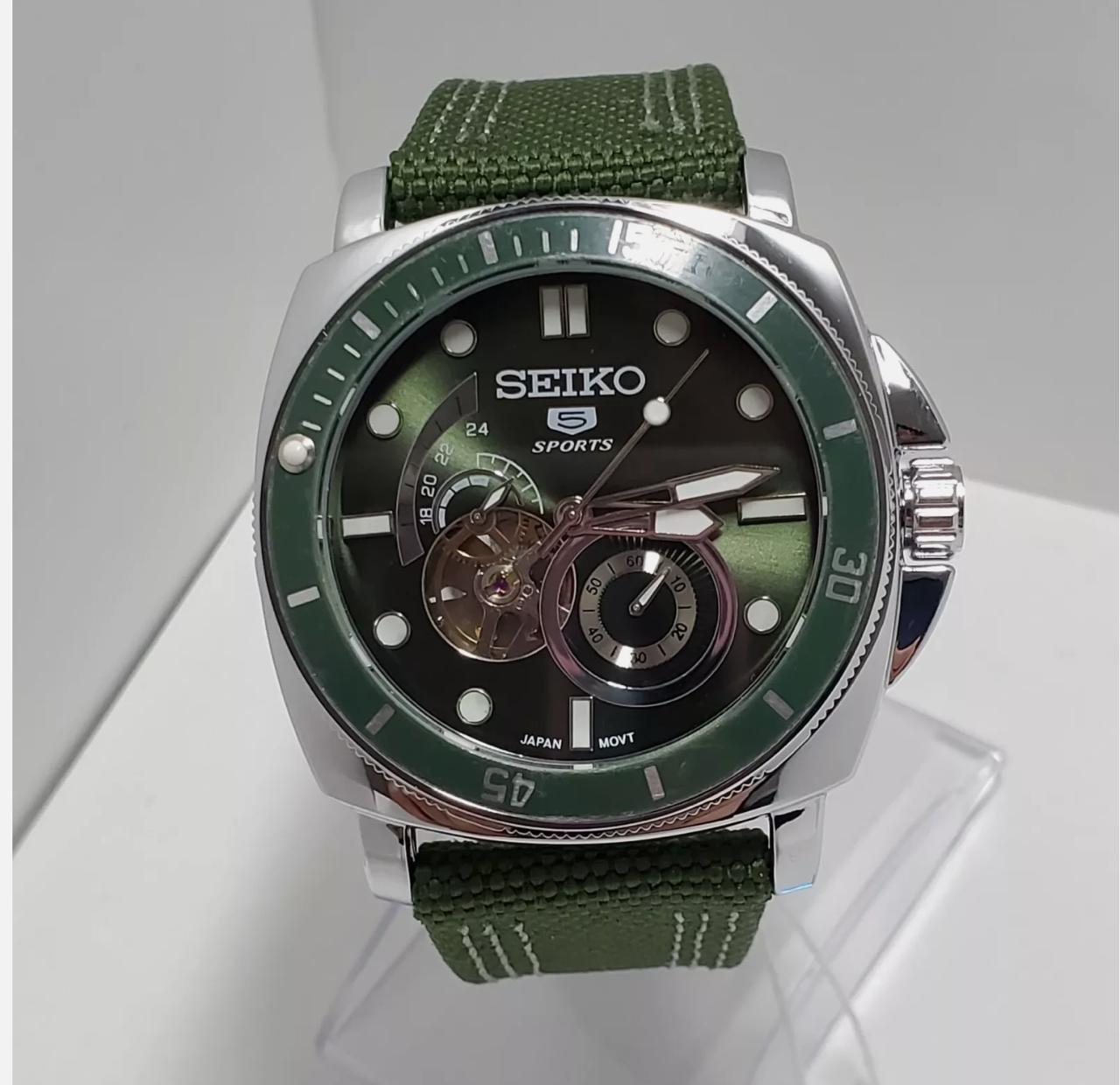 Seiko Automático Modelo 1880A Estado A1 - Caja de 42 mm - Maquina a la vista - Malla de resina entelada y cuero.
