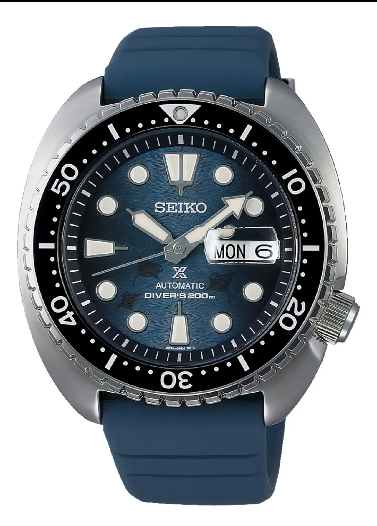 Seiko SRPF77 Manta Raya. Caja de 45 mm. Movimiento automático 4R36 con 41 hs de reserva de marcha. Cristal de Zafiro. Resiste 200 mts de profundidad. Malla de silicona. Calendario. Bisel unidireccional. Corona a rosca.